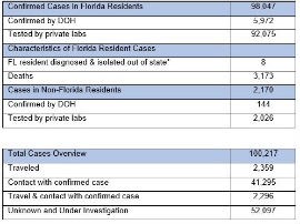 TALLAHASSEE —The Florida Department of Health (DOH), in order to provide more comprehensive data, releases a report on COVID-19 cases in Florida once per day. The DOH COVID-19 dashboard is also providing updates once per day. The state also provides a report detailing surveillance data for every Florida county, which is available here.