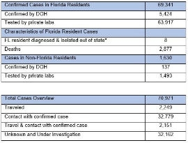 - Florida Department of Health Updates New COVID-19 Cases, Announces Seventy Deaths Related to COVID-19