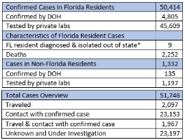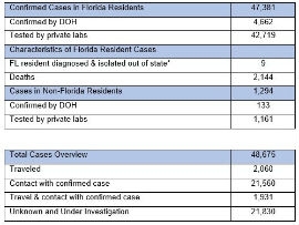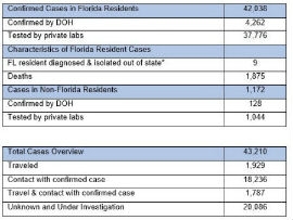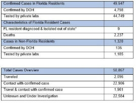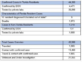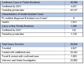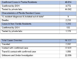 TALLAHASSEE, Fla. — The Florida Department of Health, in order to provide more comprehensive data, releases a report on COVID-19 cases in Florida once per day. The Florida Department of Health COVID-19 dashboard is also providing updates once per day. The state also provides a report detailing surveillance data for every Florida county. Previously, this information was only available for select communities. The surveillance data report is available here.