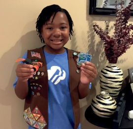 Kalia Dodd (9), a Girl Scout inMiramar, Fla.,speaks with representatives from NextEra Energy, Inc.(NEE), Florida Power & Light Company’s (FPL) parent company,during NEE’s virtual Renewable Energy STEM Patch programheld Aug. 3-9, 2020. Guided by industry professionals, each of the 46 registered Girl Scouts had the opportunity to learn about renewable energy and the option to build a solar-powered car or a wind turbine. Upon completion, each girl received a NEE Renewable Energy Patch. FPL partnered with Girl Scouts of Southeast Florida to offer the annual workshop as a virtual learning experience amid the COVID-19 pandemic. The program aims to encourage girls to explore Science, Technology, Engineering and Mathematics (STEM) career paths. Photo credit: Huchani Dodd