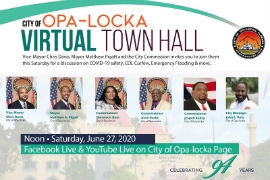 OPA-LOCKA, Fl. — City of Opa-locka Vice-Mayor Chris Davis, Mayor Matthew Pigatt and the City Commission will host a Virtual Town Hall tomorrow, Saturday, June 27, 2020, at 12 p.m. The panel will discuss the City of Opa-locka’s response to the COVID-19 pandemic, COVID-19 safety, City of Opa-locka curfews, emergency flooding, and more. The Virtual Town Hall will be broadcasted live on the City of Opa-locka’s Facebook Live and YouTube Live pages.